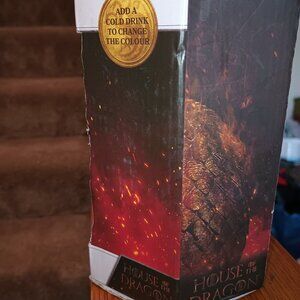 Unleash your inner dragon with this House of the Dragon Color Change Goblet. The 350ml (11 fl oz) goblet shaped drinking glass magically changes color when filled with cold liquid. Simply add your favorite chilled drink and watch the dragon transform. The House of the Dragon Color Change Goblet will impress any Game of Thrones fans. Not suitable for dishwasher or microwave use.