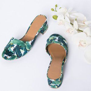 NEW Palm Print Tropical Leaf Mule Slip On Shoes