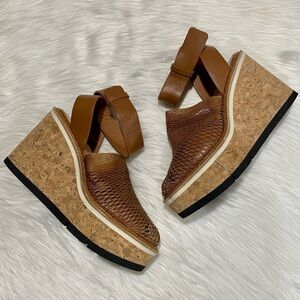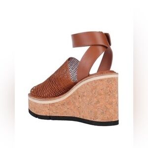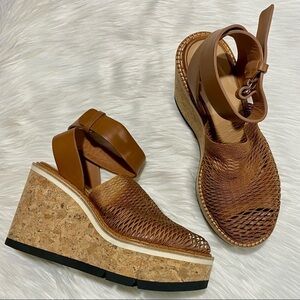 NEW Paloma Barcelo Panhea Leather Platform Wedge Sandal Tan 38 8
