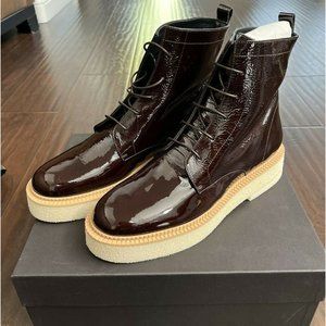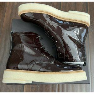 NEW Paloma Barcelo Women's Patent Leather Prudence Lace Up Boots Brown