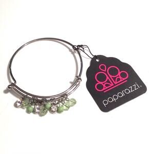 NEW Paparazzi Bangle BRACELET Green Beads & Crystal Rhinestone Dangle 6-8” Wrist