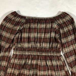 NEW Paper Crane Womens Small Plaid Squared Neck Button Dress Fall NWT $54