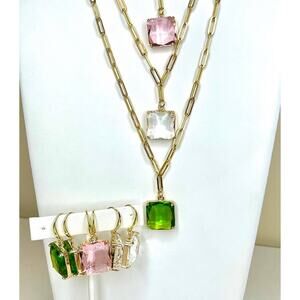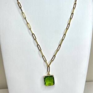NEW Paperclip Chain Necklace 16" 18" 20" Green Faceted Glass Pendant Trendy J183