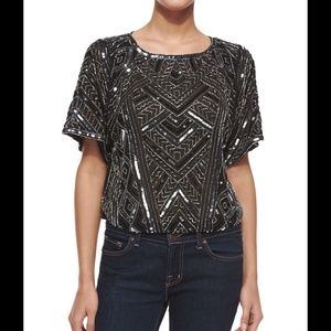NEW Parker Black Post Short-sleeve Beaded Top Size XS