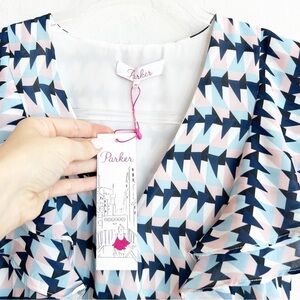 New with tags - Parker 'Talbot' mini dress. Faux wrap in front with smocked waist and ruffles. Pattern/print is called "Trixie". Retail $308.