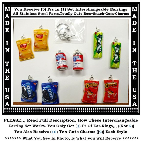 NEW Party Food Charm Interchangeable Earrings - Snack Earrings - Teen Earrings