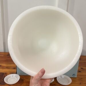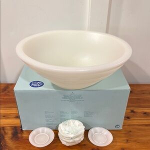 Brand new with box! One large wax bowl with floating discs.Bowl approx 4.5" h, 11" top diam. Floating wax discs: 1" h, 2 3/4" diameter.