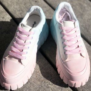 NEW Pastel Pink Blue Ombre Kawaii Cute Platform Low Top Laced Up Sneakers Shoes