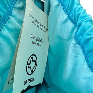 This is a pair of new Pat Dahnke turquoise blue capris with an elastic waistband and fringed beading on the pant cuff, size small. Style no. 8P47. Excellent, new condition. All photos displayed are of the actual item. Measurements;