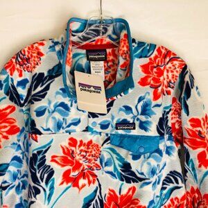 NEW Patagonia Synchilla Women's Large Floral Snap T Fleece Pullover Sweater NWT