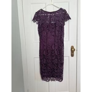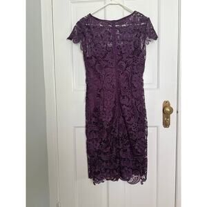 NEW Patra Women's 8 Mini Dress Crocheted Venise Purple Metallic Lace Shift Dress