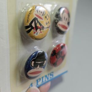 The NEW Paul Frank for Target 4 Julius Monkey Rock Star Guitarist Guitar Pin is a retro collectible pin featuring the iconic character Julius from the Paul Frank franchise. Made in China, this pin set showcases a playful and unique design that is sure to appeal to fans of pop culture and pin collection. Perfect for adding a touch of nostalgia to any outfit or collection, these pins are a must-have for any enthusiast of quirky and fun accessories.
