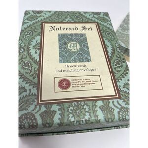 NEW Paula Scaletta Boxed Set Monogrammed Initial 16 Notecards Letter M Blue Green