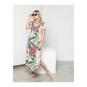 NEW Peace Love World Multi Palm Knit Jersey Petite Maxi Dress Size XXSP