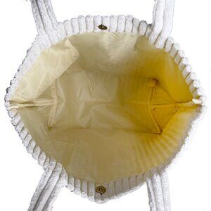 Carry nostalgia with the Peanuts Snoopy & Friends Corduroy Tote! This playful rave festival bag features a soft offwhite colored corduroy fabric base with cute woven patch of Snoopy, Charlie Brown, and Sally Brown getting ready to get cozy in the front, dual shoulder strap, fully lined interior, super spacious, lightweight, and magnetic button closure. This Peanuts Snoopy & Friends Corduroy Tote is classic, cozy, and perfect for every adventure!