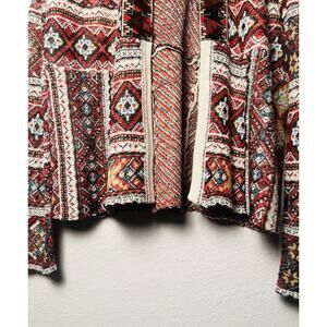 NEW Peck & Peck Wool Blend Tapestry Sweater Cardigan Sz L Tassel Hook Close Boho