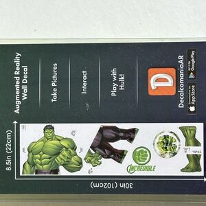 NEW Peel & Stick Marvel The Incredible Hulk Wall Decal 11 x 17”