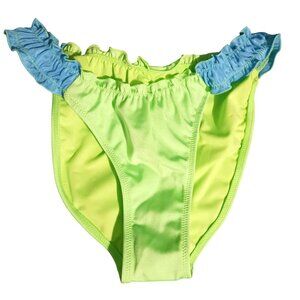 NEW Peixoto Ruffed Hipster Cheeky Bikini Swim Bottoms in Lime Green/Blue Size L