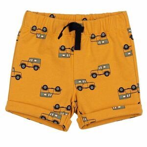 * Yellow french terry pull-on short with vehicle all-over print