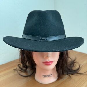 Genuine Pendleton black wool fedora with leather hatband and Pendleton stud.