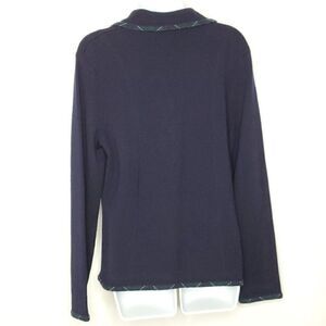Pendleton Merino Wool Cardigan Sz M Navy Green Plaid Trim 2 Front Pockets
