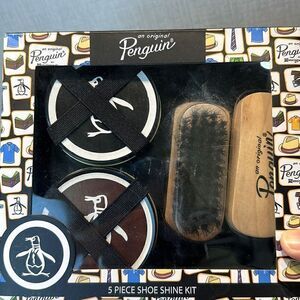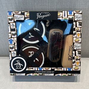NEW Penguin 5 Piece Shoe Shine Kit Brushes Polishes Cloth