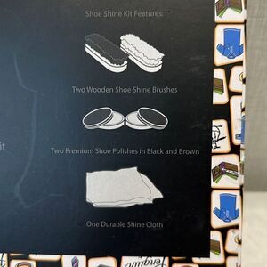Includes: two wooden shoe shine brushes, two premium shoe polishes in black and brown, and one durable shine cloth.