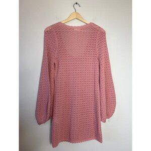 NEW Peony Pointelle Long Sleeve U Neckline Cotton Mini Dress Rose Size: Small