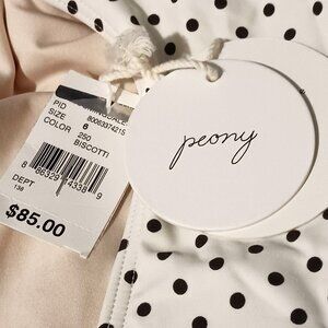NEW Peony Polka Dot Side Tie Bikini Bottoms Biscotti Size 6 Adjustable Tie Sides