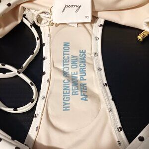 Keywords: polka dot bikini, Peony swimwear, side tie bikini, women's swim bottoms, classic swimwear, adjustable bikini, stylish swimwear, biscotti swimwear, chic swim bottoms, Peony side tie, black and white bikini, high-quality swimwear, durable bikini bottoms, size 6 swim bottoms