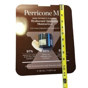This is a NEW in package container of Perricone MD High Potency Classics Hyaluronic Intensive Moisturizer Facial and N3ck cream. Gel cream. Fragrance free. Formulated with three different forms of Hyrule Lanik acid, help deeply moisturize, leading skin, looking firm, smooth, radiant, and supple. Includes DMEA, 3X hyaluronic acid, and rosemary leaf extract.