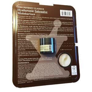 This is a NEW in package container of Perricone MD High Potency Classics Hyaluronic Intensive Moisturizer Facial and N3ck cream. Gel cream. Fragrance free. Formulated with three different forms of Hyrule Lanik acid, help deeply moisturize, leading skin, looking firm, smooth, radiant, and supple. Includes DMEA, 3X hyaluronic acid, and rosemary leaf extract.