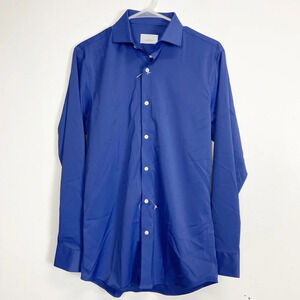 NEW Perry Ellis Portfolio Shirt Mens 14.5 32 33 Blue Long Sleeve Tech Slim NWOT