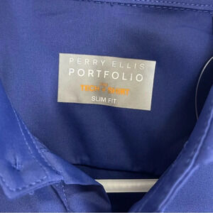 Perry Ellis Portfolio Shirt Mens 14.5 32 33 Blue Long Sleeve Tech Slim NWOT