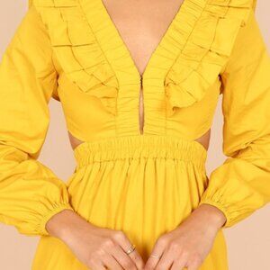 NEW Petal & Pup Mariga Long Sleeve Frill Shoulder Midi Dress in Marigold Size XS