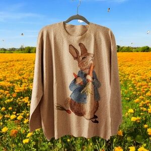 Cozy sweater featuring a charming rabbit print. Perfect for adding a whimsical touch to your wardrobe.