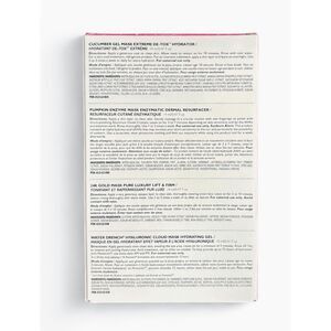 Explore the Peter Thomas Roth mini mask multiverse with this four-piece kit that includes Cucumber Gel Mask Extreme De-Tox Hydrator, smoothing Pumpkin Enzyme Mask Enzymatic Dermal Resurfacer, brightening 24K Gold Mask Pure Luxury Lift & Firm, and hydrating Water Drench Hyaluronic Cloud Mask Hydrating Gel.
