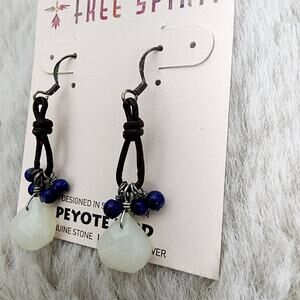 NEW Peyote Bird Free Spirit Blue and White Beaded Dangle Hook Earrings