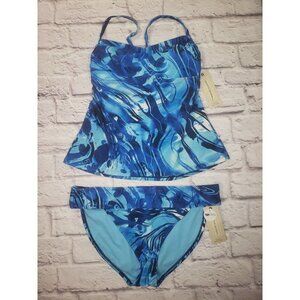 NEW Peyton & Parker Women's Size Small Blue Tie Dye 2pc Tankini Swimsuit Set.