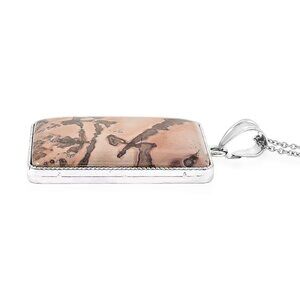 Picture Jasper Gemstone Pendant Necklace in Silvertone 20 Inches