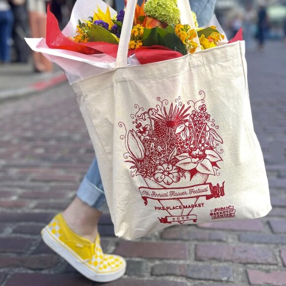 NEW Pike Place Market Shopping Tote Bag, Seattle, Washington Groceries Canvas