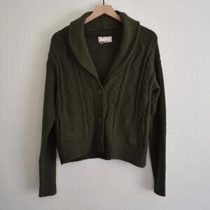 NEW Pilcro Cropped & Collared Cable Knit Cardigan Sweater Moss