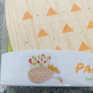 NEW in Box Wood Party Pineapple Board & 15 Decorative Fruit Picks