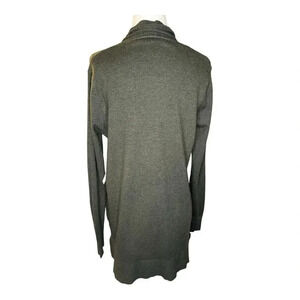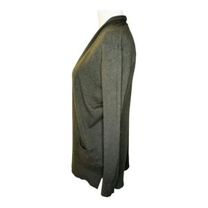 Keywords: Pink Clover, green cardigan, women's sweater, open front, long sleeve, relaxed fit, knit fabric, casual wear, office wear, viscose, nylon, solid color, two pockets, new with tags.