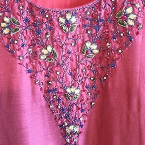 Pink Embroidered Beaded Tunic Ethnic Indian Kurta Authentic Top/ Dress Small