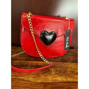 NEW Pink Haley Heart Black Red Faux Leather Crossbody Bag Purse