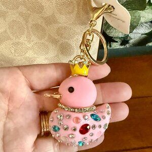 Brand NEW Pink Jeweled Duck with Crystals and Crown Keychain Charm