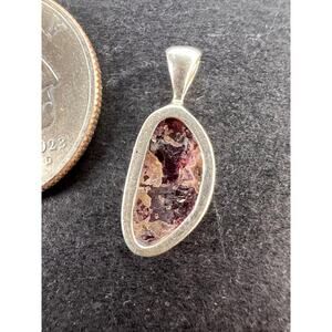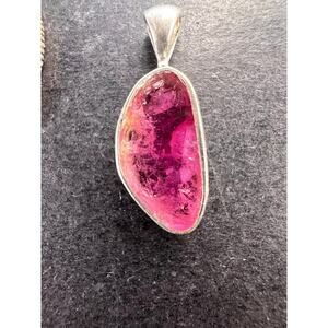 Genuine pink tourmaline freeform slice in 925 sterling silver. This is for the pendant only. No chain included. Total weight is 1.28 grams. 925 NG