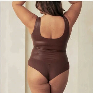 NEW Pinsy Shapewear Brown Faux Leather Bodysuit XL NWT Minimalist Buttery soft satin-matte