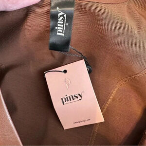 NEW Pinsy Shapewear Brown Faux Leather Bodysuit XL NWT Minimalist Neutral
